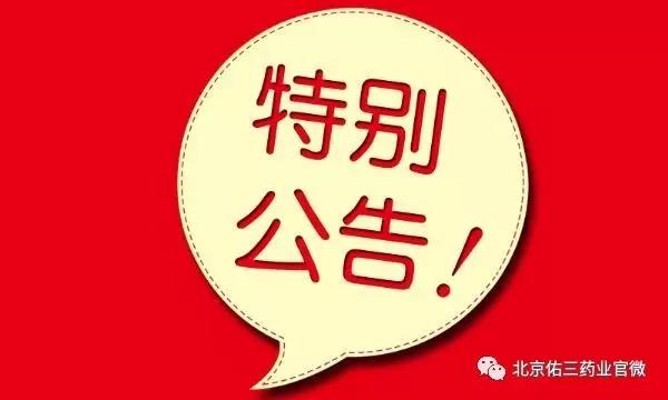 北京佑三藥業(yè)有限公司對(duì)外公告